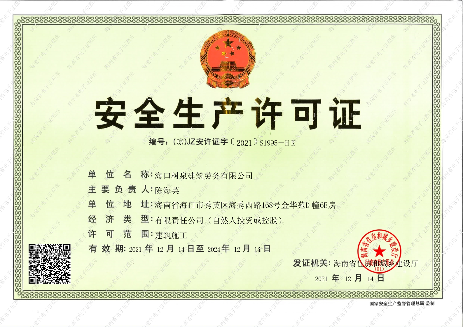 海口樹泉建筑勞務有限公司成立于2011年,公司位于海口,其前身是一家專業(yè)建筑施工隊,自2004年即開始在海南從事建筑勞務施工。自成立至今,公司已經(jīng)擁有一支科學管理、質(zhì)量過硬、能打硬仗,搶工期的專業(yè)隊伍。能獨立承擔大中型工業(yè)與民用建筑 、室內(nèi)外裝修、各類機電設備安裝工程。代表工程有海口濱海華庭、三亞時代海岸T01/02/04/05棟高層、合肥東海花園二期、陵水富力灣B區(qū)高層、三亞金中海(酒店)、瓊海大印經(jīng)典花園、海口環(huán)球海景大酒店(四星級酒店,在建中)、陵水珍珠大廈(五星酒店)、海口萬達廣場、美蘭機場二期。